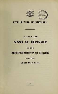 Credit: Annual report of the Medical Officer of Health / City Council of Pretoria. Source: Wellcome Collection.