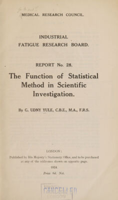 The function of statistical method in scientific investigation / by G. Udny Yule.