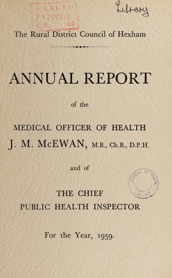 Credit: [Report 1959] / Medical Officer of Health, Hexham R.D.C. Source: Wellcome Collection.