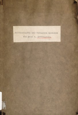 Psychoanalyse und verwandte Methoden / von Hans v. Hattingberg.