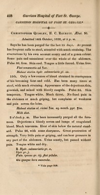 A series of tables, exhibiting the results of disease in the different European regiments serving under the Madras Presidency, and in the Garrison Hospitals of Madras and Poonamalee, from the commencement of the year 1820, to the end of the year 1826; with observations on the practice employed in fever, hepatitis, and dysentery. Extracted from the half yearly reports of the medical officers in charge, during the periods embraced by these tables respectively / The whole arranged ... by the Medical Board.