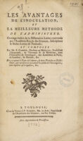 Les avantages de l'inoculation, et la meilleure méthode de l'administrer / Ouvrage traduit de la dissertation latine ... On y a ajouté le texte de l'auteur. Public Domain Mark. Source: Wellcome Collection.