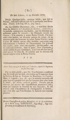 Credit: Les avantages de l'inoculation, et la meilleure méthode de l'administrer / Ouvrage traduit de la dissertation latine ... On y a ajouté le texte de l'auteur. Source: Wellcome Collection.