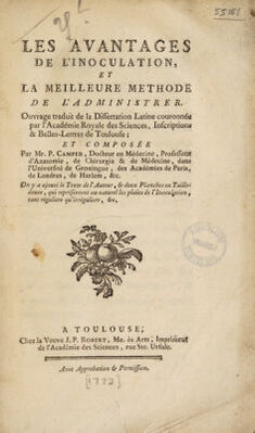 Credit: Les avantages de l'inoculation, et la meilleure méthode de l'administrer / Ouvrage traduit de la dissertation latine ... On y a ajouté le texte de l'auteur. Source: Wellcome Collection.