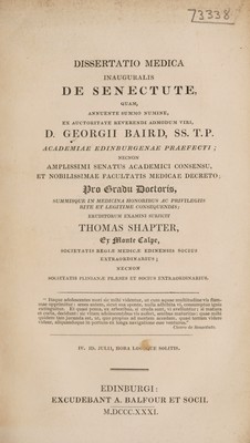 Dissertatio medica inauguralis de senectute / [Thomas Shapter].