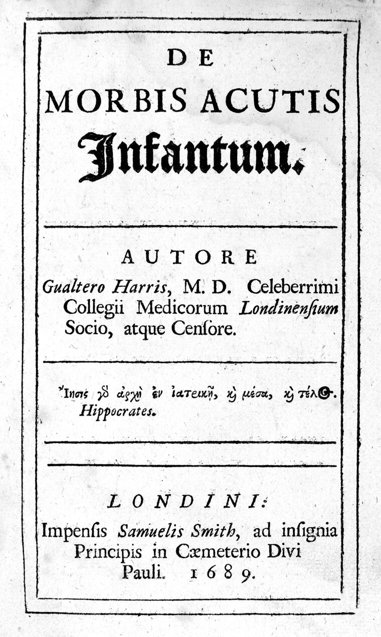 M0013903: Harris: <i>De morbis acutis infantum</i>, 1689: title page. Public Domain Mark. Source: Wellcome Collection.