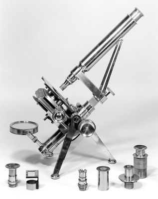 Credit: M0018156: Achromatic microscope by Powell and Lealand, 1849. Source: Wellcome Collection.