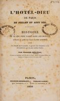 L'Hôtel-Dieu de Paris en juillet et août 1830. Histoire de ce qui s'est passé dans cet hôpital pendant et après les trois grandes journées, suivie de détails sur le nombre, la gravité des blessures, et les circonstances qui les ont rendues fatales / [Prosper Ménière]. Public Domain Mark. Source: Wellcome Collection.