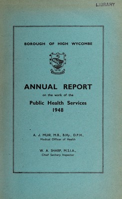 ![sillllII!llllll!illllllllll]llll!llliinillllll!llllllillllllilllllllllll1lll!nilllllllll[llllll!lllliil1lillllllllll!llll!!lllllll!l!l!!ll!li!lin!iHlil!lll!!llll<ii!lllllliil!IIIlllIllllllinil!!li= 3S —; BOROUGH OF HIGH WYCOMBE ( ANNUAL REPORT [ | on the work of the | | Public Health Services ( I 1948 I | A. J. MUIR, M.B., B.Hy., D.P.H., | I ‘ Medical Officer of Health I | W. A. SHARP, M.S.I.A., | | Chief Sanitary Inspector | 1 1 jS EE](https://iiif.wellcomecollection.org/image/b29427733_0001.jp2/full/800%2C/0/default.jpg)