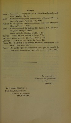 Contribution à l'étude des papillomes de la vessie : leur traitement par la méthode de Nitze : thèse présentée et publiquement soutenue à la Faculté de médecine de Montpellier le 9 juillet 1902 / par D'Antoine de Taillas.