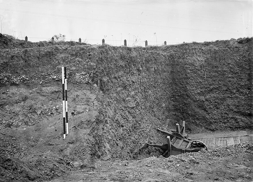Credit: M0014905: Pleistocene deposits of the Thames valley: section in Purser's Pit (backing against Great Western Railway on north). Source: Wellcome Collection.