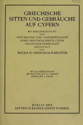 Griechische Sitten und Gebräuche auf Cypern : mit Berücksichtigung von Naturkunde und Volkswirtschaft so wie der Forschritte unter englischer Herrschaft / dargestellt von Magda H. Ohnefalsch-Richter.