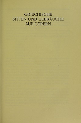 Griechische Sitten und Gebräuche auf Cypern : mit Berücksichtigung von Naturkunde und Volkswirtschaft so wie der Forschritte unter englischer Herrschaft / dargestellt von Magda H. Ohnefalsch-Richter.