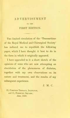 Credit: On diabetes, and its successful treatment / by John M. Camplin. Source: Wellcome Collection.