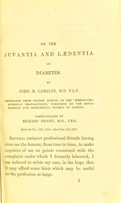 Credit: On diabetes, and its successful treatment / by John M. Camplin. Source: Wellcome Collection.
