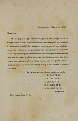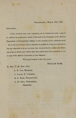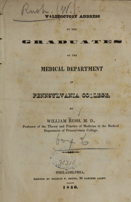 Valedictory address to the graduates of the Medical Department of Pennsylvania College / by William Rush.