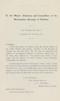 Annual report on the public health of Finsbury for the year 1914.
