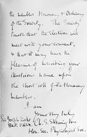 M0019522EB: Letter to Joseph Lister from the Honorary Secretary of the Physiological Society offering him an Honorary Fellowship, 1882: second page. Public Domain Mark. Source: Wellcome Collection.