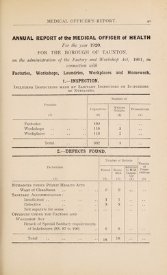 Credit: [Report 1920] / Medical Officer of Health, Taunton Borough. Source: Wellcome Collection.