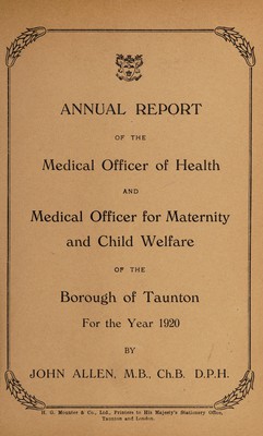 Credit: [Report 1920] / Medical Officer of Health, Taunton Borough. Source: Wellcome Collection.