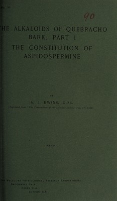 The alkaloids of quebracho bark. Pt. 1, The constitution of aspidospermine / by A.J. Ewins.