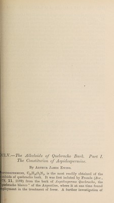 Credit: The alkaloids of quebracho bark. Pt. 1, The constitution of aspidospermine / by A.J. Ewins. Source: Wellcome Collection.