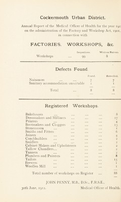 Credit: [Report 1911] / Medical Officer of Health, Cockermouth U.D.C. Source: Wellcome Collection.