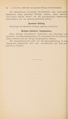 Die Immunität und die spontane Heilung der Krebskrankheit nach den Ergebnissen der modernen experimentellen Forschung / von Anton Sticker.