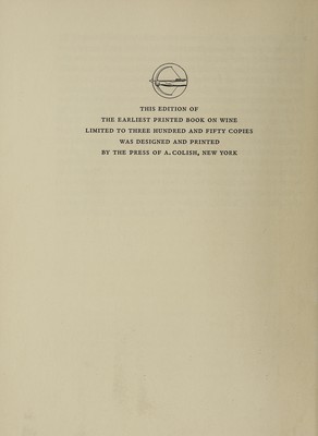 The earliest printed book on wine / by Arnald of Villanova ; now for the first time rendered into English, and with an historical essay, by Henry E. Sigerist ; with facsimile of the original edition, 1478.