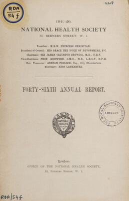Credit: Annual report : 46th 1919/20 / National Health Society. Source: Wellcome Collection.