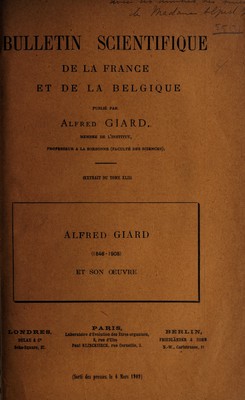 Alfred Giard (1846-1908) et son oeuvre / [Alfred Giard].