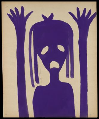 Credit: A woman with raised arms in purple. Source: Wellcome Collection.