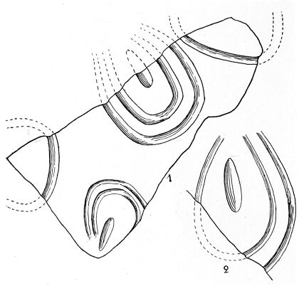 M0015098: Illustration of female sexual organs incised on pieces of limestone, Upper Palaeolithic period
