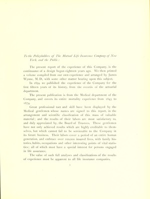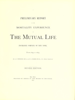Mortuary experience of the Mutual Life Insurance Company of New-York. From 1843 to 1874.