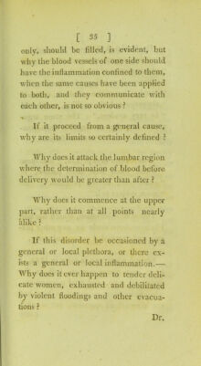 An inquiry into the nature and cause of that swelling in one or both of the lower extremities which sometimes happens to lying-in women.
