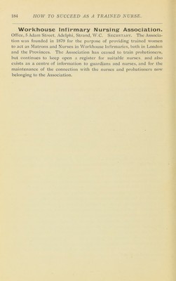 Credit: How to succeed as a trained nurse : being a guide to her remunerative employment, with particulars of the various openings in the Unite Kingdon and abroad, government and municipal departments, associations and co-operations where the services of private nurses are in demand / edited by Sir Henry Burdett. Source: Wellcome Collection.