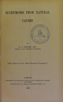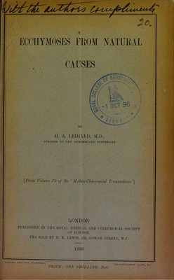 Ecchymoses from natural causes / by H.A. Lediard.