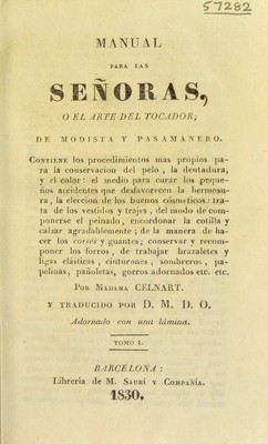 Manual para las señoras, o el arte del tocador ; de modista y pasamanero ... / Traducido per D.M.D.O.
