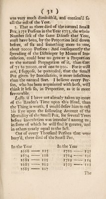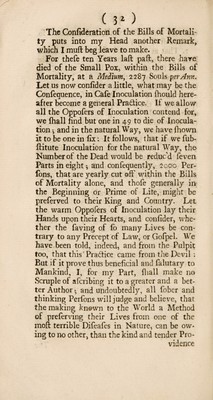 Credit: An account of the success of inoculating the small pox in Great Britain. With a comparison between the miscarriages in that practice, and the mortality of the natural small-pox / By James Jurin. Source: Wellcome Collection.