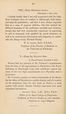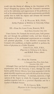 Credit: Testimonials submitted to a Committee of the Governors of St. Mary's Hospital, [and, Letter of application for the post of Physician] / by John Rose Cormack. Source: Wellcome Collection.