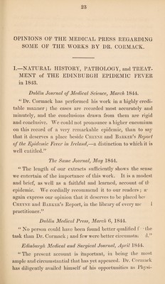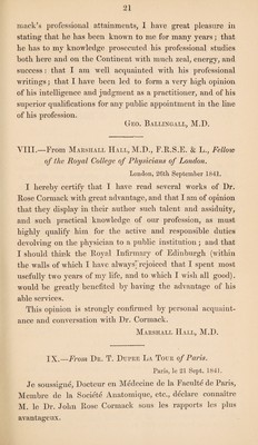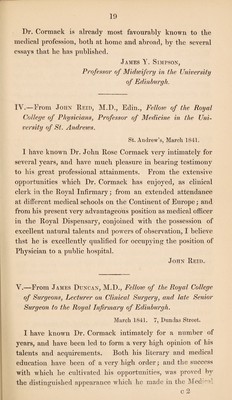 Testimonials submitted to a Committee of the Governors of St. Mary's Hospital, [and, Letter of application for the post of Physician] / by John Rose Cormack.