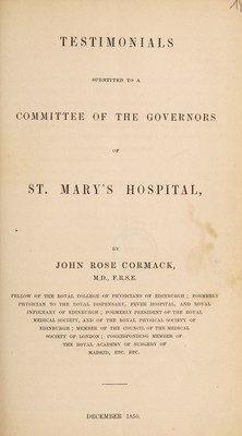 Testimonials submitted to a Committee of the Governors of St. Mary's Hospital, [and, Letter of application for the post of Physician] / by John Rose Cormack.