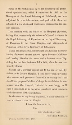 Credit: Testimonials submitted to a Committee of the Governors of St. Mary's Hospital, [and, Letter of application for the post of Physician] / by John Rose Cormack. Source: Wellcome Collection.