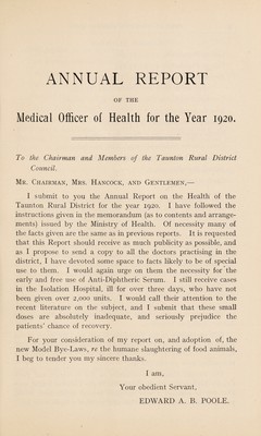 [Report 1920] / Medical Officer of Health, Taunton R.D.C.