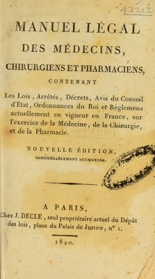 Manuel légal des médecins, chirurgiens et pharmaciens.