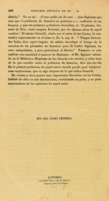 Historia antigua de Mégico: sacada de los mejores historiadores españoles, y de los manuscritos, y de las pinturas antiguas de los Indios; dividida en diez libros ... con disertaciones sobre la tierra, los animales, y los habitantes de Mégico / Escrita por D. Francisco Saverio Clavigero; y traducida del italiano por Jose Joaquin de Mora.