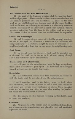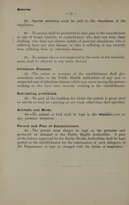 Model conditions drawn up by the Department of Public Health for certain manufactories, shops, markets, etc., requiring licences under the "Etablissements insalubres" law.