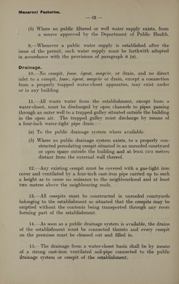 Model conditions drawn up by the Department of Public Health for certain manufactories, shops, markets, etc., requiring licences under the "Etablissements insalubres" law.