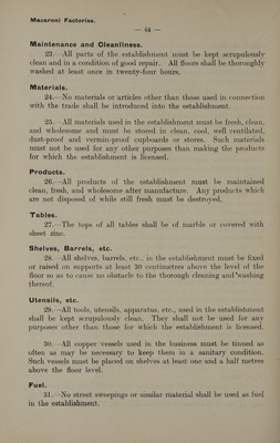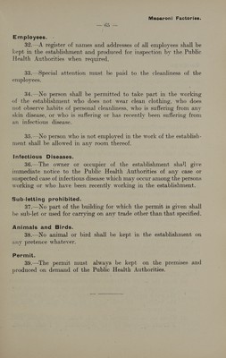 Credit: Model conditions drawn up by the Department of Public Health for certain manufactories, shops, markets, etc., requiring licences under the "Etablissements insalubres" law. Source: Wellcome Collection.