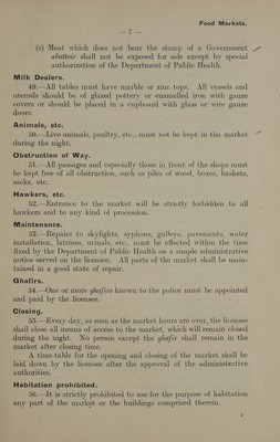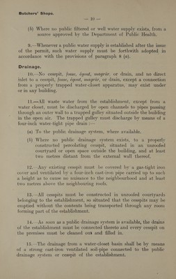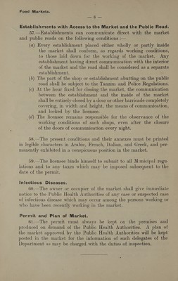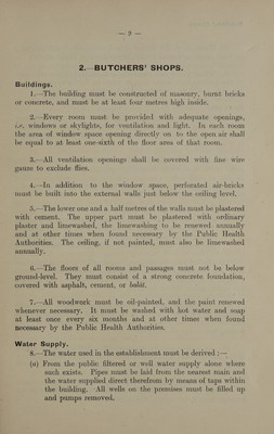 Model conditions drawn up by the Department of Public Health for certain manufactories, shops, markets, etc., requiring licences under the "Etablissements insalubres" law.